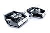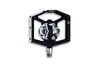 leichtes Click-Pedal mit beidseitigem Klick-System, SPD-kompatibel, CNC-veredelter Aluminiumkörper und CrMo Achse, angefaste Kanten für erhöhte Bodenfreiheit in Kurven, große Standfläche, extrem flache Bauweise, 16 austauschbare und einstellbare Pins, gedichtete IndustrielagerMaterial: Aluminium
